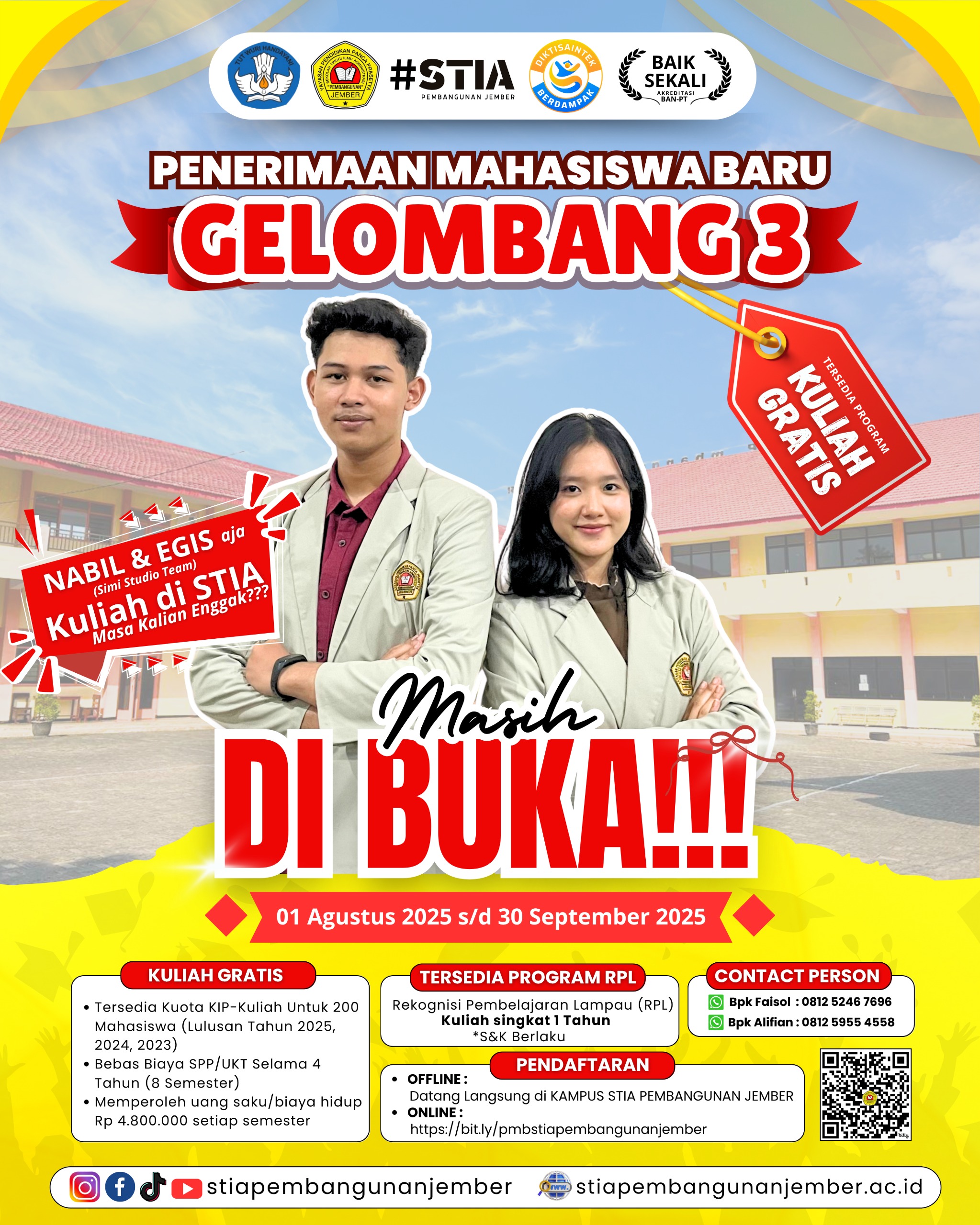 STIA Pembangunan Jember Buka Pendaftaran Mahasiswa Baru Gelombang 3!