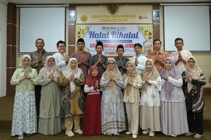 Stiapembangunanjember.ac.id - Suasana hangat dan penuh kekeluargaan menyelimuti Gedung Aula Surachmad Sekolah Tinggi Ilmu Administrasi (STIA) Pembangunan Jember pada Senin (30/3/2026). Segenap sivitas akademika berkumpul bersama dalam acara Halal Bihalal yang diselenggarakan oleh Unit Kegiatan Mahasiswa (UKM) Kajian Islami